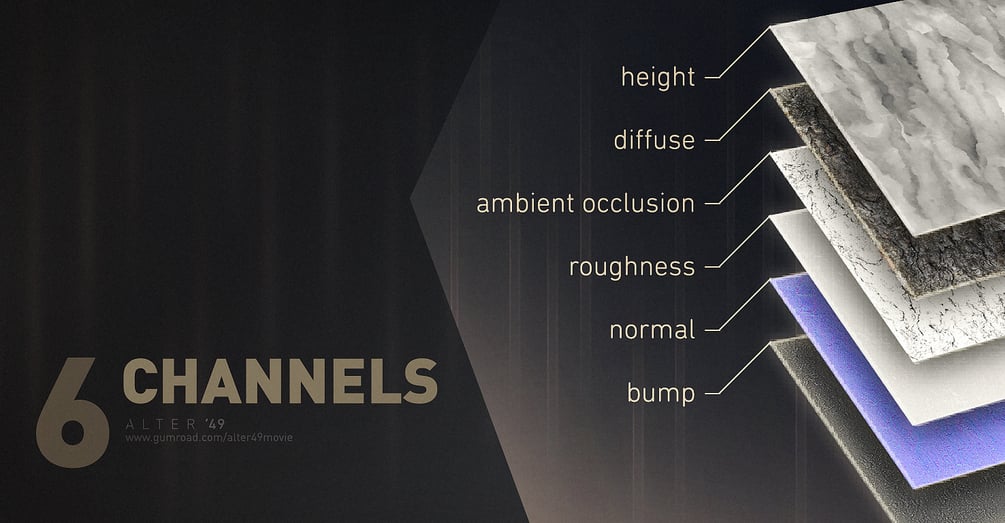 ALTER '49 - TEXTURES PACKĀ includes just some of MANY production ready assets we're creating for our upcoming student short film. ALL assets we create for our project, will be available for you trough Packs, each for only $1